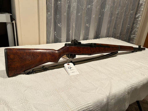 4. Springfield Armory M1 Garand 30 cal. US Military rifle, w/flash suppressor, nice walnut stock, canvass sling, bayonet lug, 23” barrel, Mfg. Sept. 1941, Very good condition. SN: 3304386.