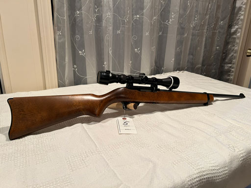 5. Ruger 10/22 Carbine, 22 LR, clip fed semi auto, 18” barrel, Winchester 9-31 variable scope. SN: 116-28373.