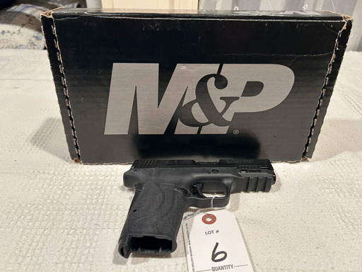 6. Smith & Wesson M&P Shield 9mm Luger semi auto pistol, 3 1/2” barrel, black synthetic grip, original box, 2 clips. SN: RDZ2284.