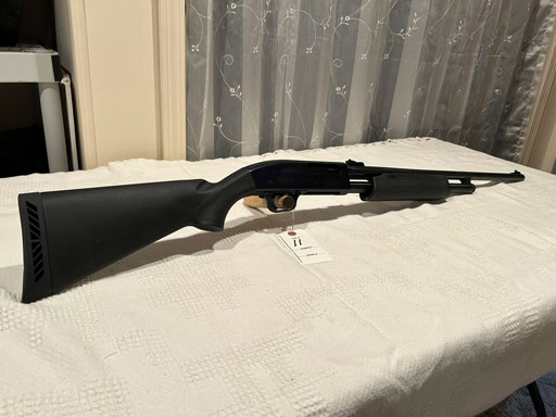 11. Mossberg Model 88, 20 ga. pump action, 3” chamber, 24” ported barrel, black synthetic stock, cushion butt end. SN: MV 0927199.