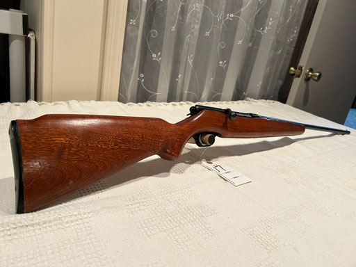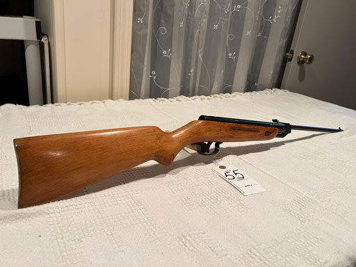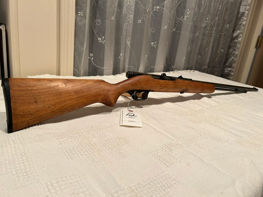 12. Westernfield Model 59A, 22LR, tube fed semi auto, light walnut stock, 24” barrel. SD: None.