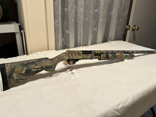 13. New England Firearms NWTF 12 ga. 3” chamber, 27 1/2” Real Tree camo vent rib barrel, cushion butt, camo checkered stock, screw in choke. SN: 526276.