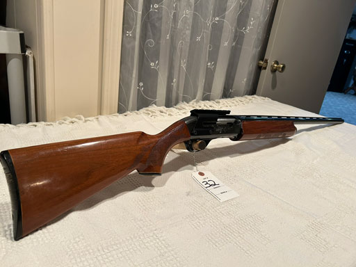 24. Sears Model 43 – 103, 22 S, L, LR, semi auto, full length feed tube, 22” barrel, nickle bolt & trigger, light walnut stock, Ted Williams scope. SN: None.