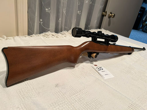 35. Ruger 10/22 Carbine, 22LR, semi auto, 18 1/2” barrel, 3 – 9 variable scope. SN: 233-87957.