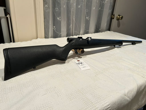 58. Like new Marlin Model X7VH .223 Target, 26” barrel, checkered black synthetic stock, sling posts, cushion butt end, Cabelas 3.5 – 10 x 40 scope. SN: MM342217S.