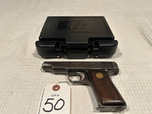 50. Deutche Werke Werkrfurt 7.65 semi auto pistol, clip fed, walnut grips, Made In Germany.