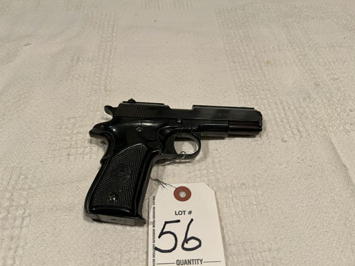 56. Llama .380 semi auto pistol3 1/2” barrel, original clip, checkered brown plastic grip, Made In Spain. Out of production. SN: 831434.