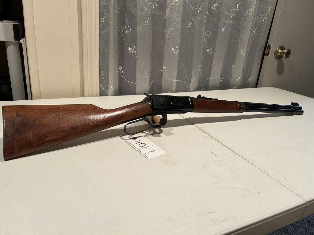 3. Winchester Model 94 44 magnum Saddle Ring Carbine, blue, walnut stock & forearm, 20” barrel, Buckhorn sites, very good condition. Serial #: 3422049M.