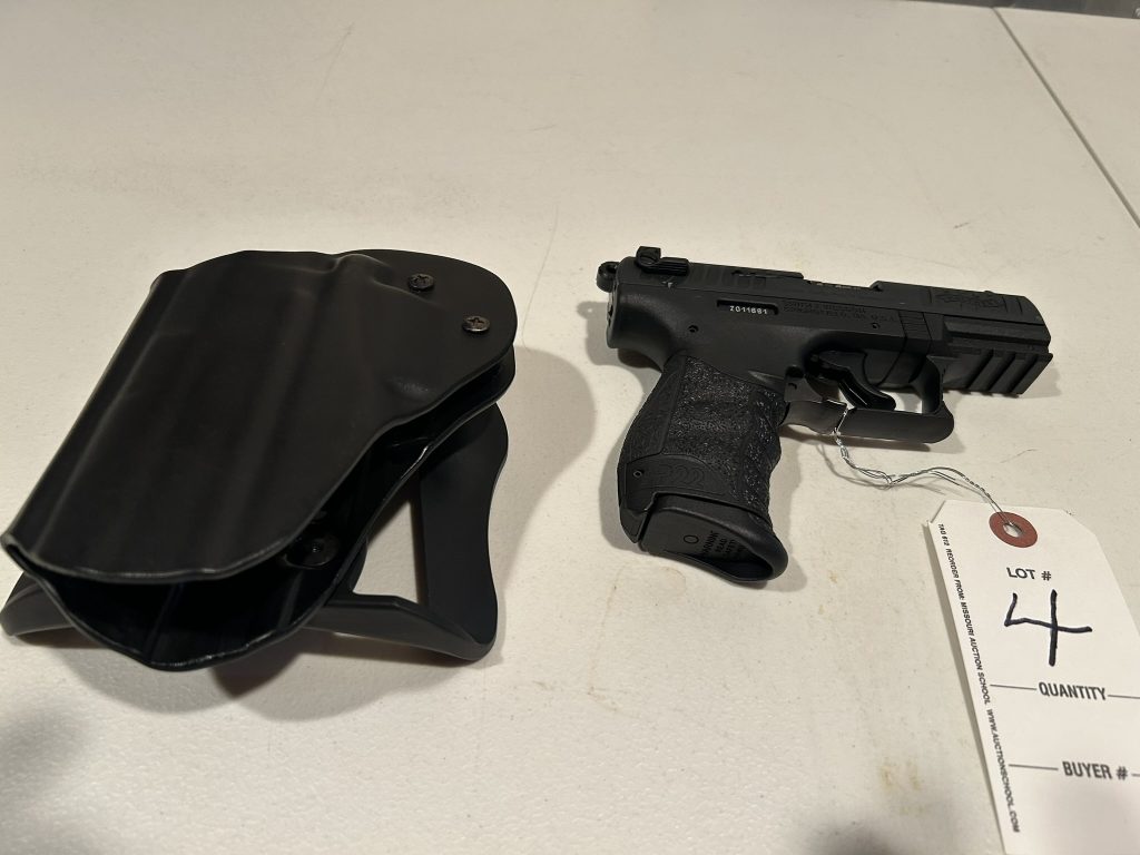 4. Walther P22 22 cal. clip fed semi auto, belt holster. Serial #: ZO11661.