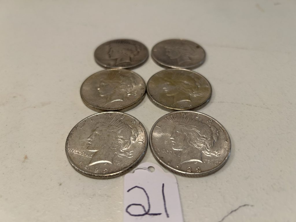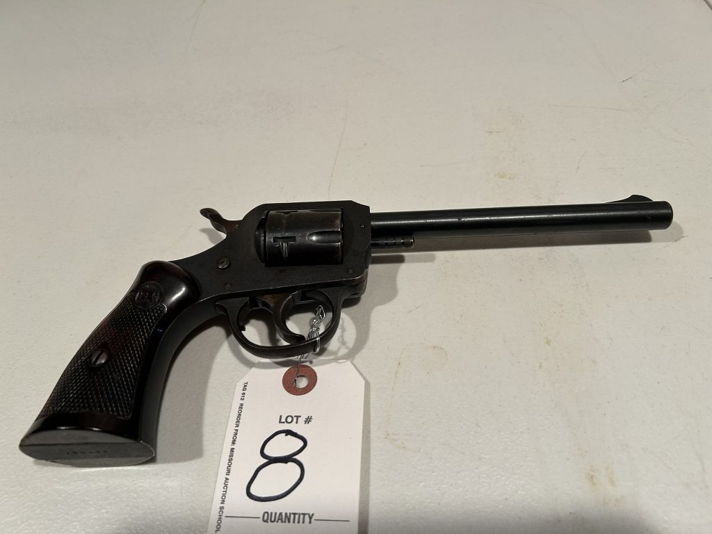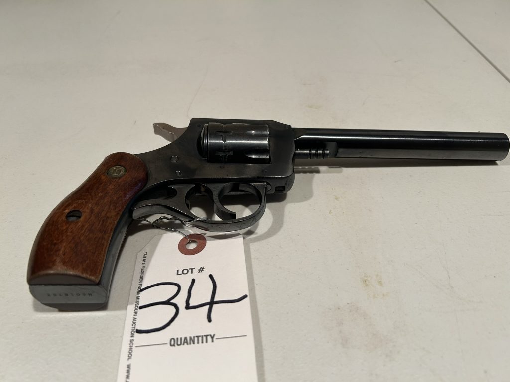 8. H & R Model 622 22 cal. revolver, 6” blue barrel, brown plastic grips. Serial #: U17057.
