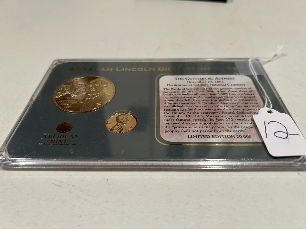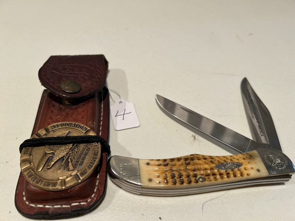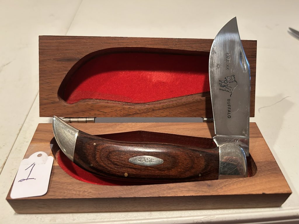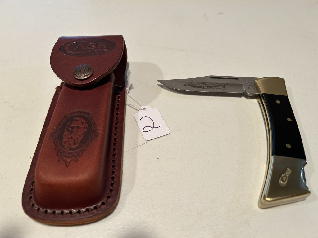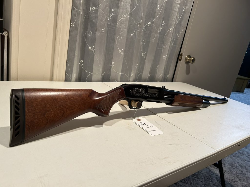 9. Mossberg Model 500A 12 ga. Gold Scroll pump action, 3” chamber, 24” rifled slug barrel, blue, walnut checkered grip & forearm, folding rear sites, gold trigger. Serial #: L9022020.