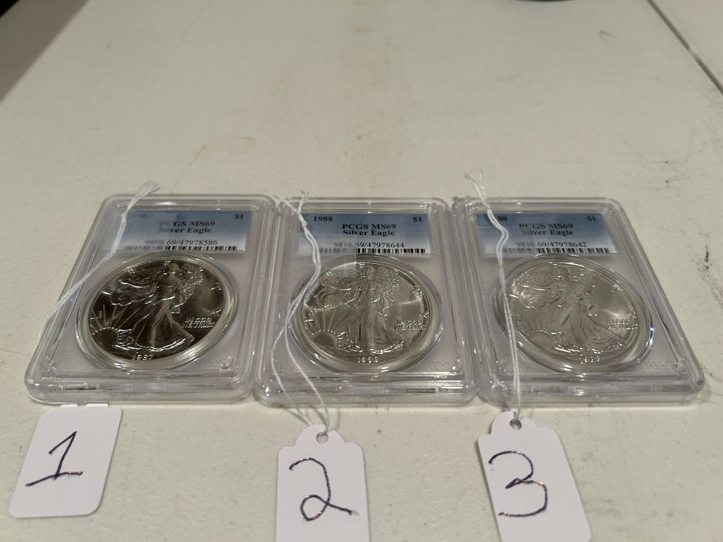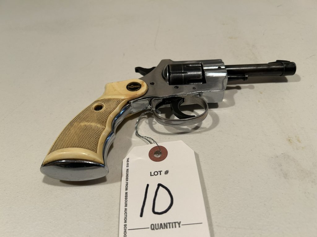 10. Rohm Model RG24 22 cal. Revolver, nickle receiver, blue 31/2” barrel, white plastic grips. Serial #:98791.