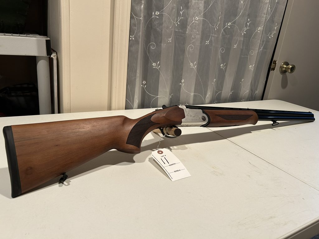 11.Iver Johnson 28 ga. O/U Lightweight semi auto, checkered walnut grip & forearm, receiver engraving, 28” vent rib barrel, 3” chamber, sling posts. Serial #: 28A22-3248.