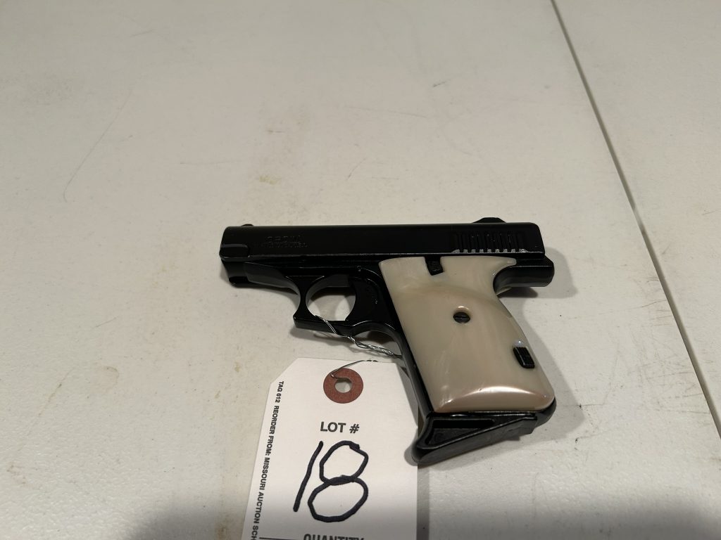 18. Lorcin Model L22 22 cal. Clip fed semi auto, 23/4” barrel, imitation pearl grips. Serial #: 094581.