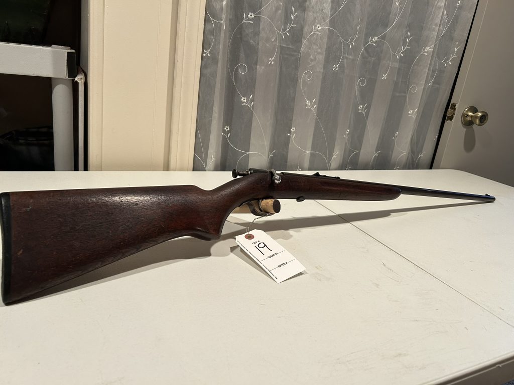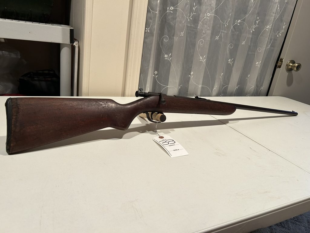 37. Savage Model 40 22 S, L, LR bolt action, clip fed, 24” blue barrel, walnut stock, checkered grip. Serial #: None.