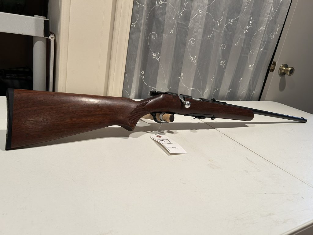 19. Winchester Model 60A 22 cal. S, L. LR Finger groove bolt action, walnut stock & forearm, 27” barrel. Serial #: None.