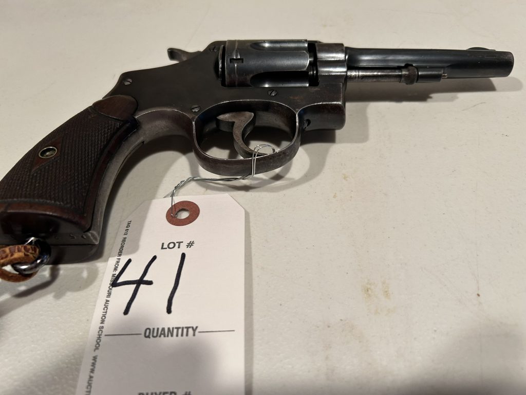 41. Orbea 6 shot blue revolver, 32-20 cal. Checkered wood grip, lanyard ring. Serial #: 059568.