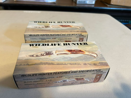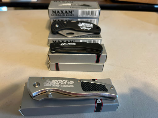 1993 IU Big Ten Champions commemorative folding knife; 7 Jasper Engines & Transmissions; Hopf Equipment; Haysville Mill; 2 Wildlife Hunters w/stag handles & orig. boxes.