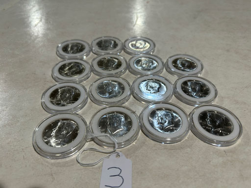 3. Choice of 15 JFK 1964 Silver Halves, Unc, in acrylic rds.