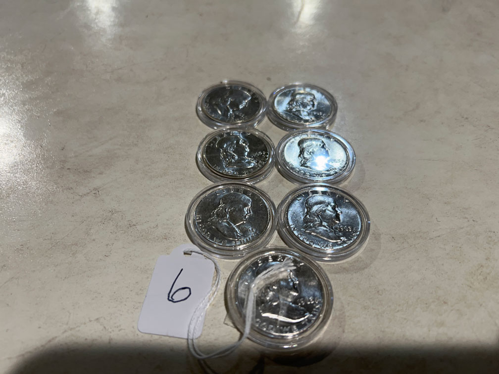 6. Choice of 7 Ben Franklin 1963 silver halves, Unc. in acrylic rds.