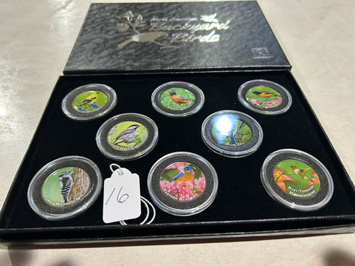 16. 2 sets of 8 North American Birds, colorized, in acrylic rds.