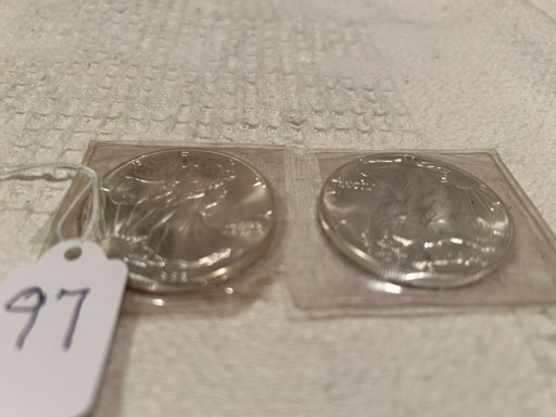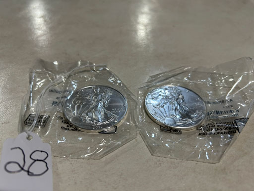 28. Choice of 2 – 2021 American Eagle silver dollars.