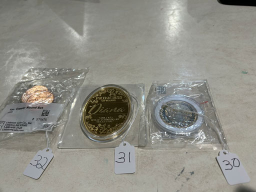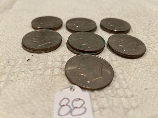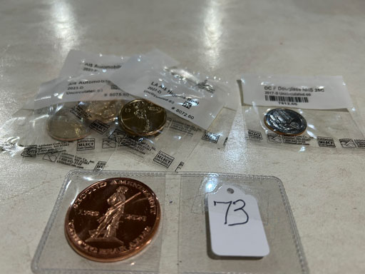 73. 7 Unc. 60 $1 coins, Large Copper 2nd Amendment coin, DCF Douglass Unc. 60 quarter.
