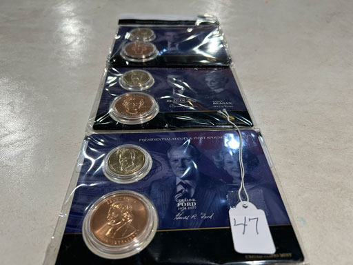 47. 3 Presidential $1 coin and First Spouse medal sets.