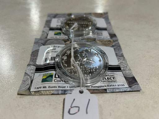 61. 2 – 1997 Botanic Gardens silver dollar in acrylic rds., Unc. Proof 63.