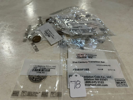 78. Mixed lot of 1935 Walking Liberty half, 2 Mercury dimes, 2 Buffalo nickels, Washington silver quarter, 6 Lincoln Head cents.