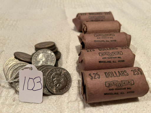 103 Choice of 6 rolls of 25 Susy B dollars.