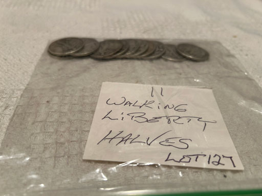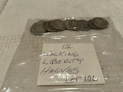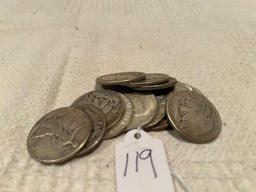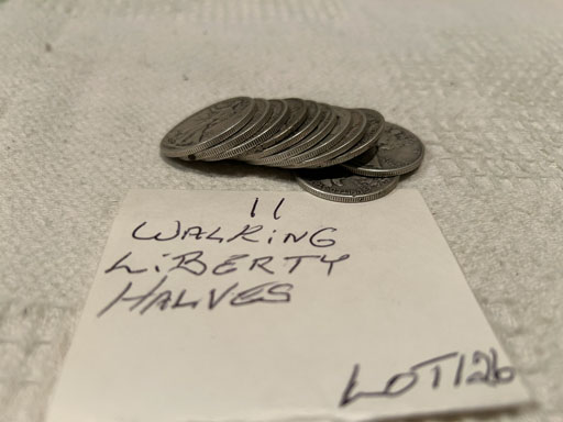 119. 7 Walking Liberty halves, 6 – 1964 JFK halves.