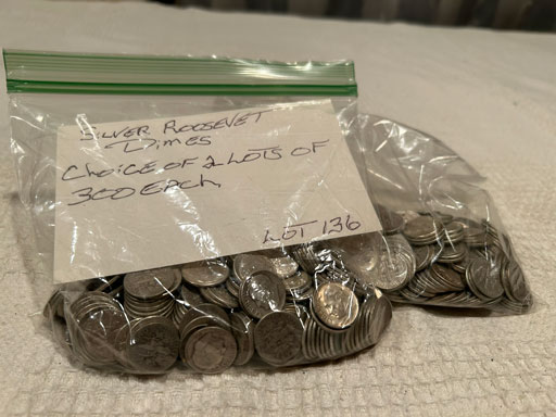 136. Choice of 2 lots of 300 Roosevelt silver dimes
